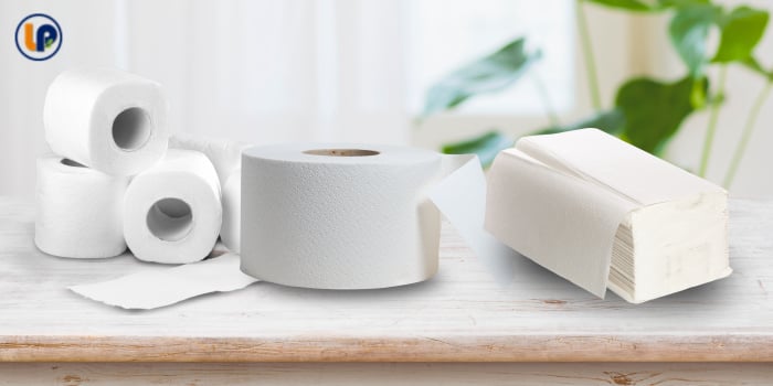 Papel higiênico, papel toalha, copos e descartáveis em um só lugar.